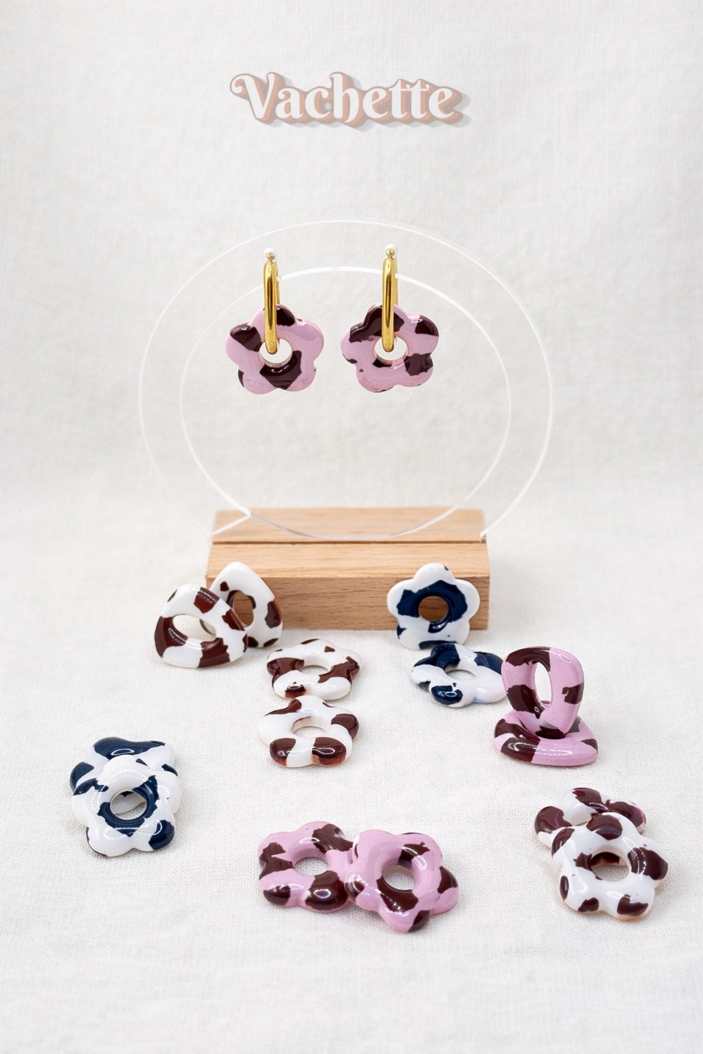 Chaque pampille est entièrement réalisée à la main par nos soins en argile polymère, puis soigneusement recouverte d’une résine UV sur l’ensemble de la pièce afin d’apporter brillance, protection et durabilité.