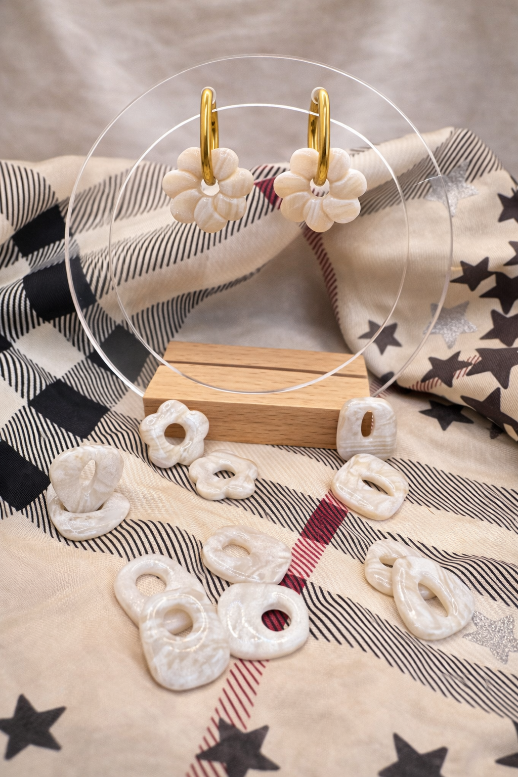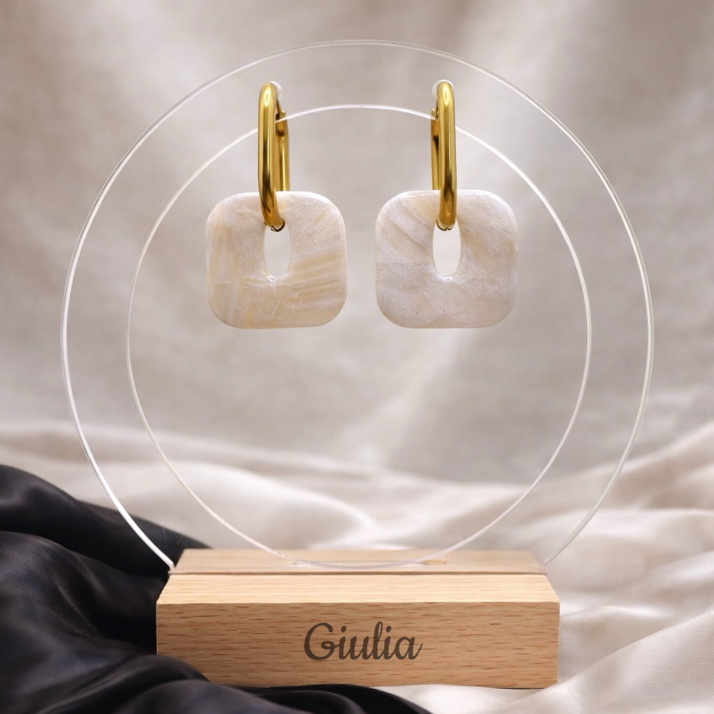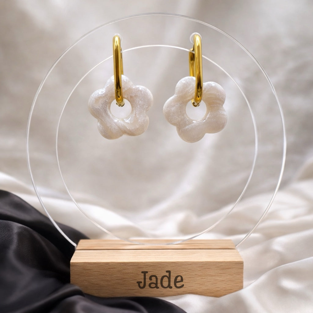 Entièrement façonnées à la main dans notre atelier, nos pampilles sont réalisées en argile polymère, puis recouvertes de résine UV pour un fini lisse et brillant.